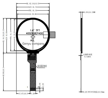 | Wielkość modułu | 42.14 ((H) × 44.24 ((V) × 1.96 ((D) mm |